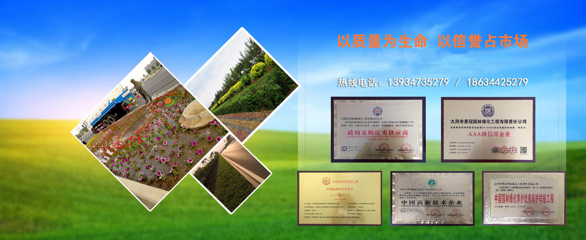 大同市景冠園林綠化工程有限責(zé)任公司是一家根植于設(shè)計(jì)、施工、植保養(yǎng)護(hù)、苗木花卉生產(chǎn)于一體的園林景觀企業(yè)。公司“以質(zhì)量為生命”、“以信譽(yù)求發(fā)展”這是公司一貫的經(jīng)營(yíng)宗旨。并以創(chuàng)新,誠(chéng)信,綠色,共享的發(fā)展理念,創(chuàng)造良好的企業(yè)環(huán)境。堅(jiān)持愛(ài)綠,護(hù)綠,保綠的方針為城市增添一份綠色,用綠色擔(dān)當(dāng)生態(tài)建設(shè)使命是我們共同追求的價(jià)值和企業(yè)目標(biāo)。以全新的管理模式,完善的技術(shù),周到的服務(wù),卓越的品質(zhì)為生存根本。幾年來(lái)我們致力于園林景觀植物領(lǐng)域的研究,在城市綜合體景觀,校園園林景觀,道路景觀,生態(tài)農(nóng)業(yè)景觀,美麗鄉(xiāng)村景觀,濕地景觀等多個(gè)領(lǐng)域參與規(guī)劃設(shè)計(jì)施工。不斷加大科技投入力度,加強(qiáng)人才的儲(chǔ)備,網(wǎng)絡(luò)技術(shù)的培訓(xùn),提升自主創(chuàng)新能力,不斷完善企業(yè)文化,用超前的技術(shù)制定出一套完整的園林植保技術(shù)管理方案。我們堅(jiān)持以擔(dān)當(dāng)為使命,用戶(hù)至上,服務(wù)至上,秉持初衷,不忘初心,實(shí)實(shí)在在,心無(wú)旁騖做好植保養(yǎng)護(hù)主業(yè),打造屬于自己的企業(yè)品牌,好好服務(wù)客戶(hù),打動(dòng)客戶(hù)。